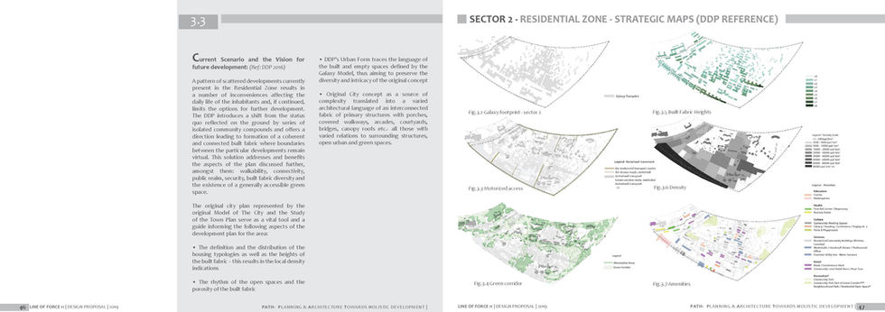 Lines of Force are one of the most important features of the Galaxy Plan and play a central role in defining the ‘dynamic movement’ of this plan form. They create a ‘hill like’ ambiance in the city area while at the same time providing the possibility of compact development, optimising the use of land and efficient service infrastructure.